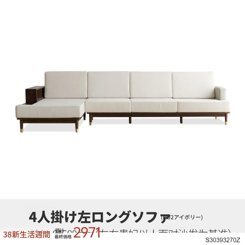 北欧风格全实木橡木ソファ:现代理念、収納可能なL字型デザイン、小型リビングに最適!