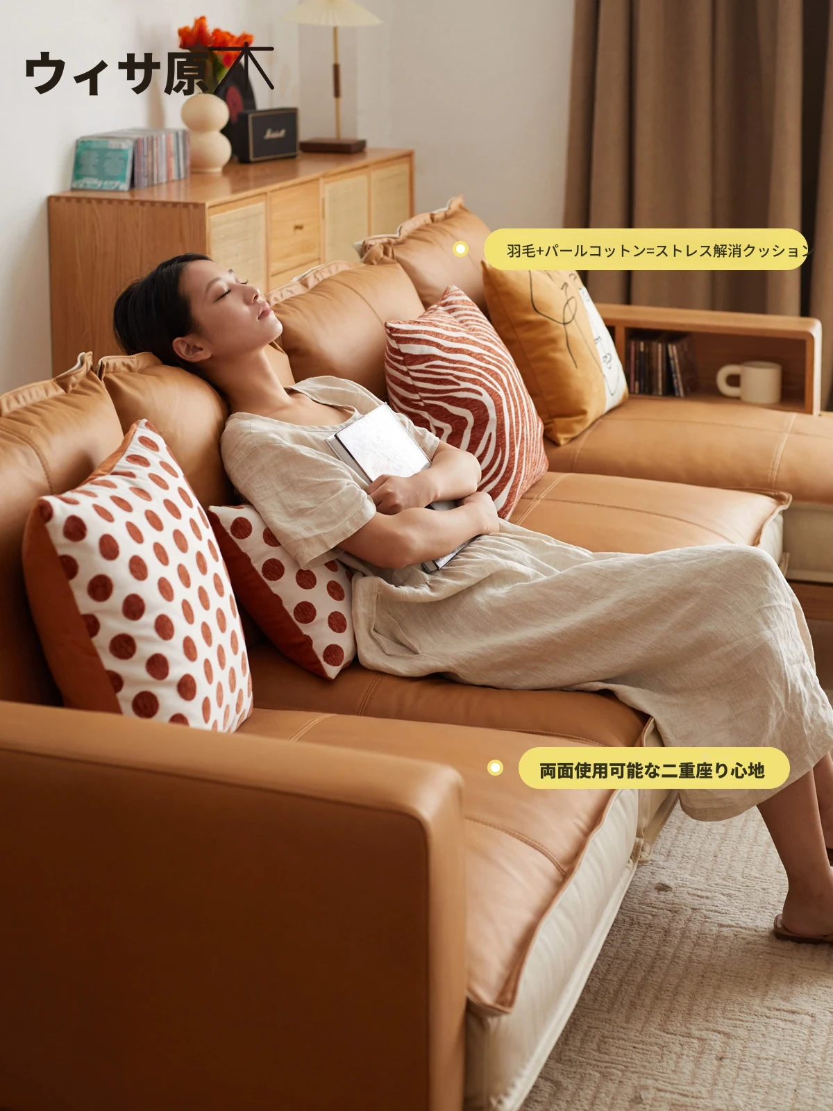 【ヴィサ】イタリアンミニマリズム本革ソファ - ラグジュアリーなトップグレインレザー使用、コンパクトな3人掛けでリビングを優雅に演出