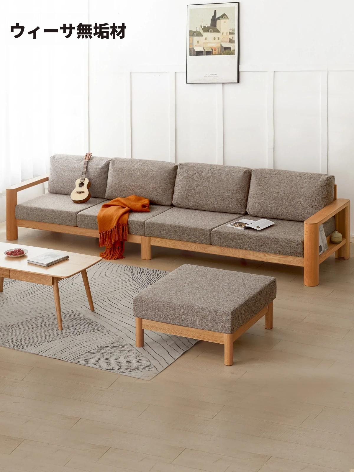 ヴィサ天然木製ソファ:家庭用コンパクトデザイン、洗濯可能なファブリック、オーク材の直列4人掛けソファ,理想のリビングにぴったり!