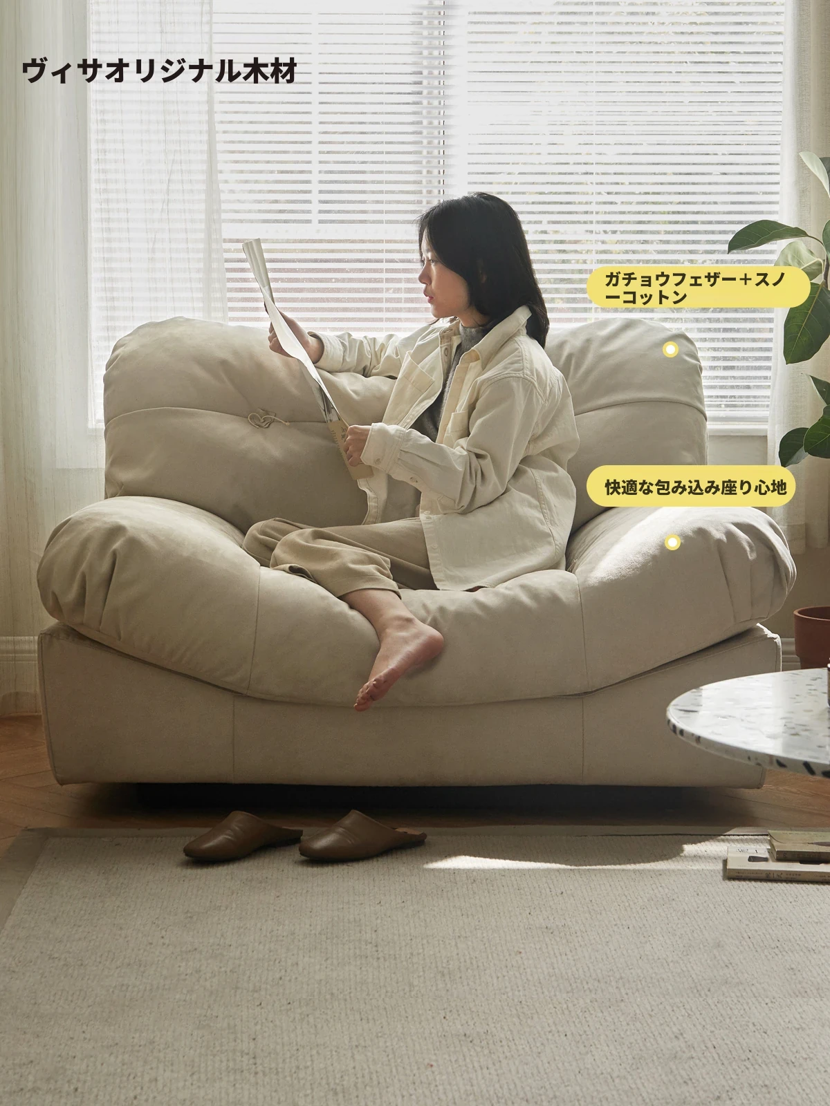 【柔らかい雲のように包み込む】ヴィシャスシンプルリビングスエードファブリックソファー – ホームリラックス用クリーミーホワイトラウンジソファー