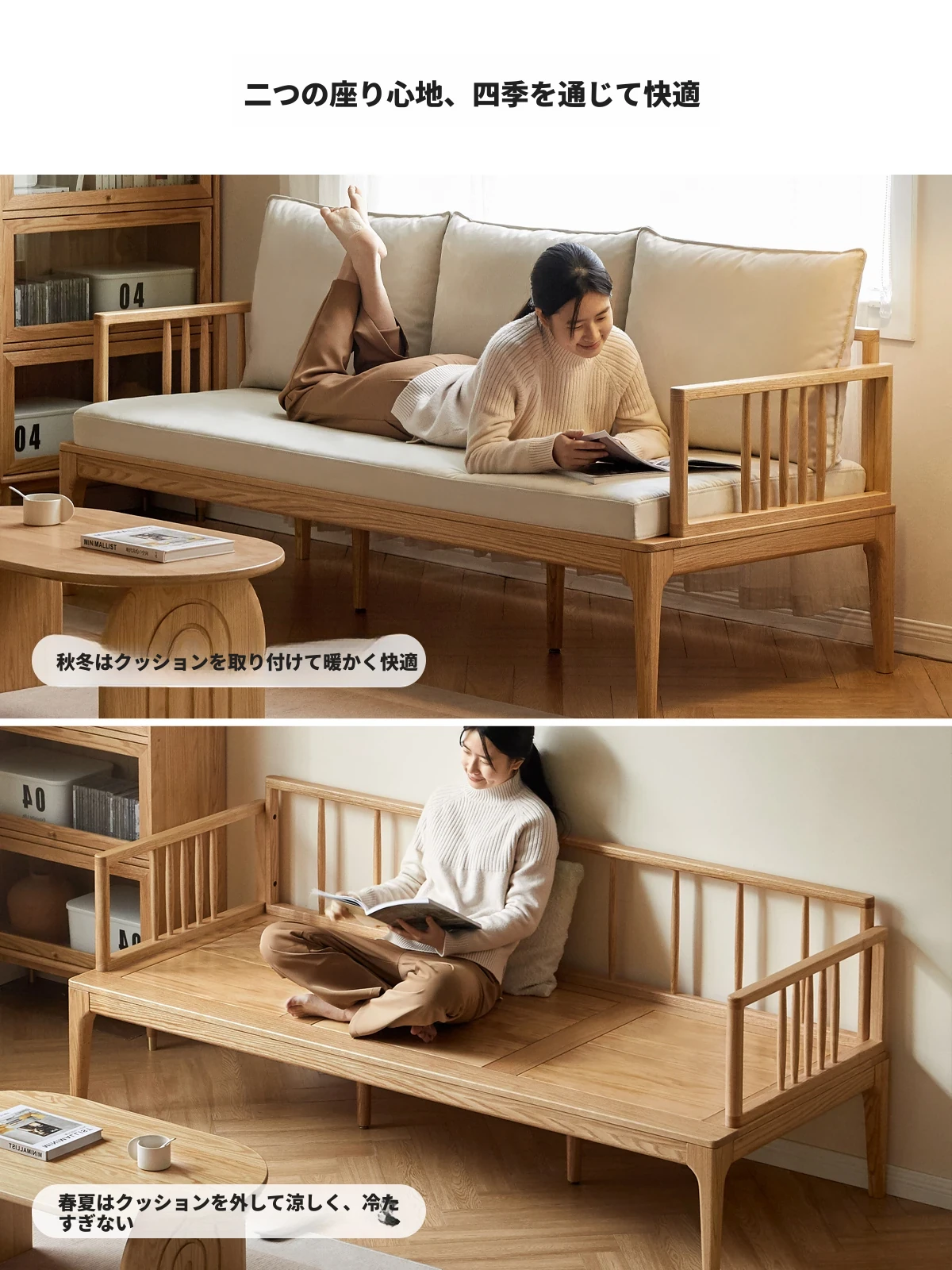 源氏木语×ヴェーザの実木ソファ | 中古風デザインの3人掛け直排ソファ | 小スペースにぴったりな布製ソファ | おしゃれで快適なリビングを演出!