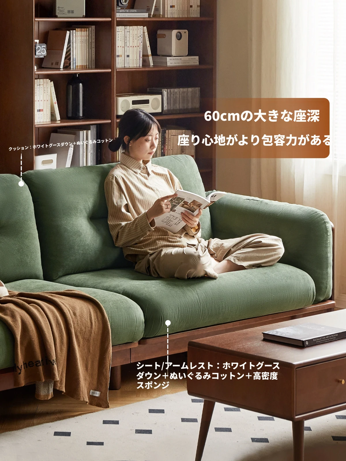 ヴィサ布ファブリックソファー、小型アパート向け、全カバー脱着可能なレトロスタイル。リラックスできる3人掛けソファー、トレンドのグリーンコーデュロイ&ダウン素材使用で贅沢さ満点!
