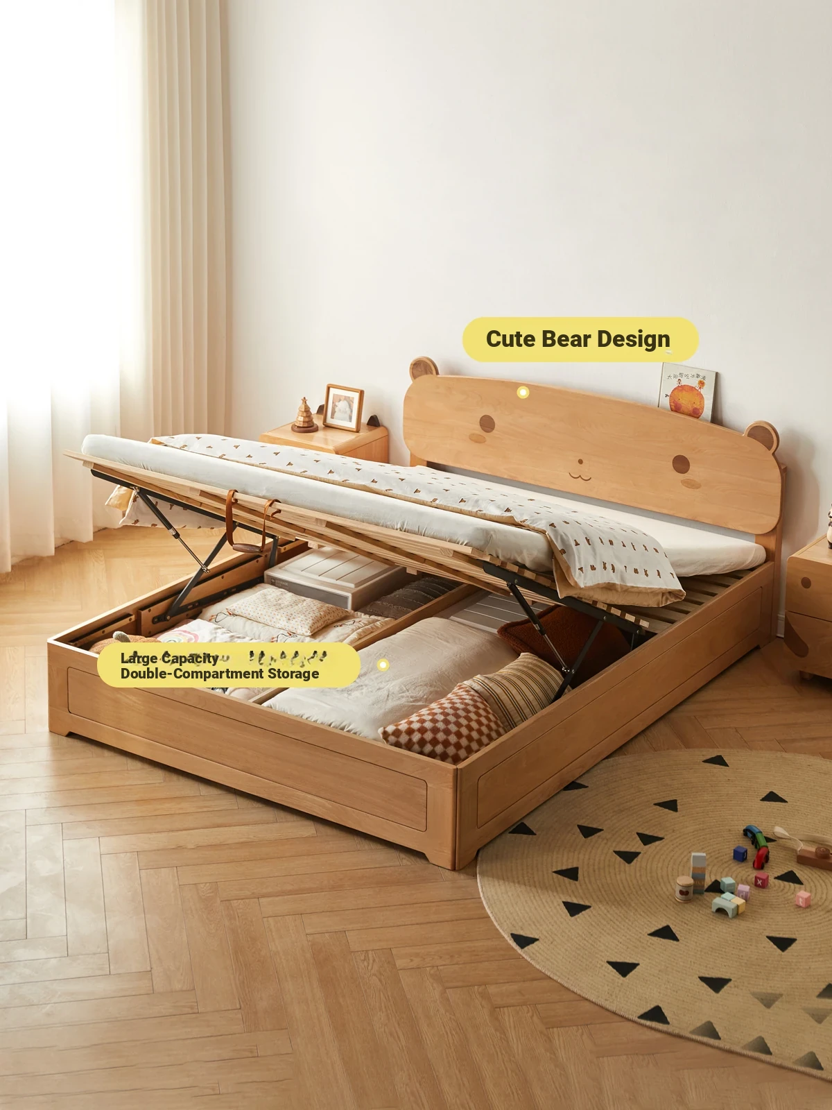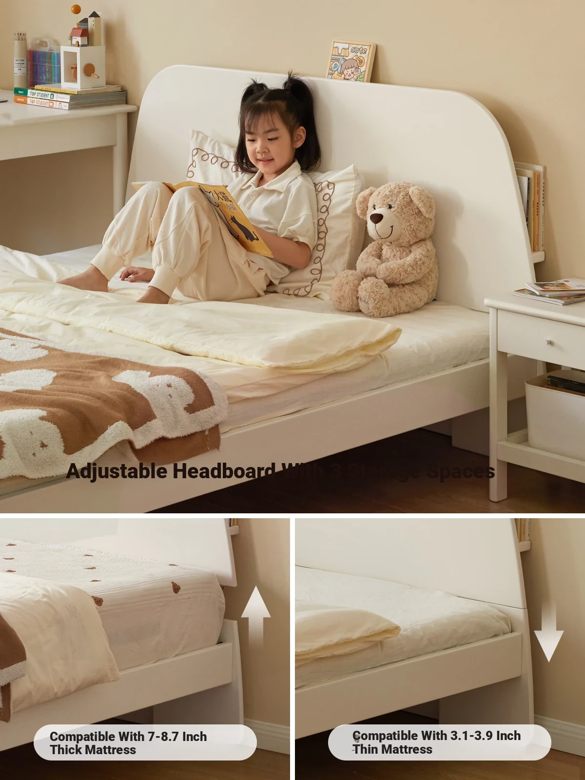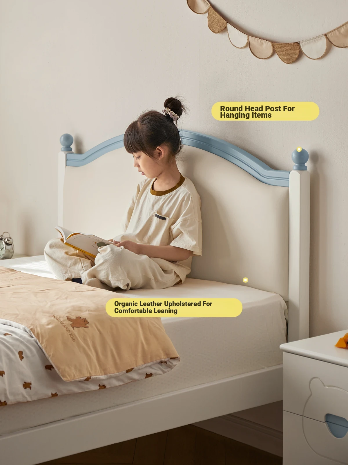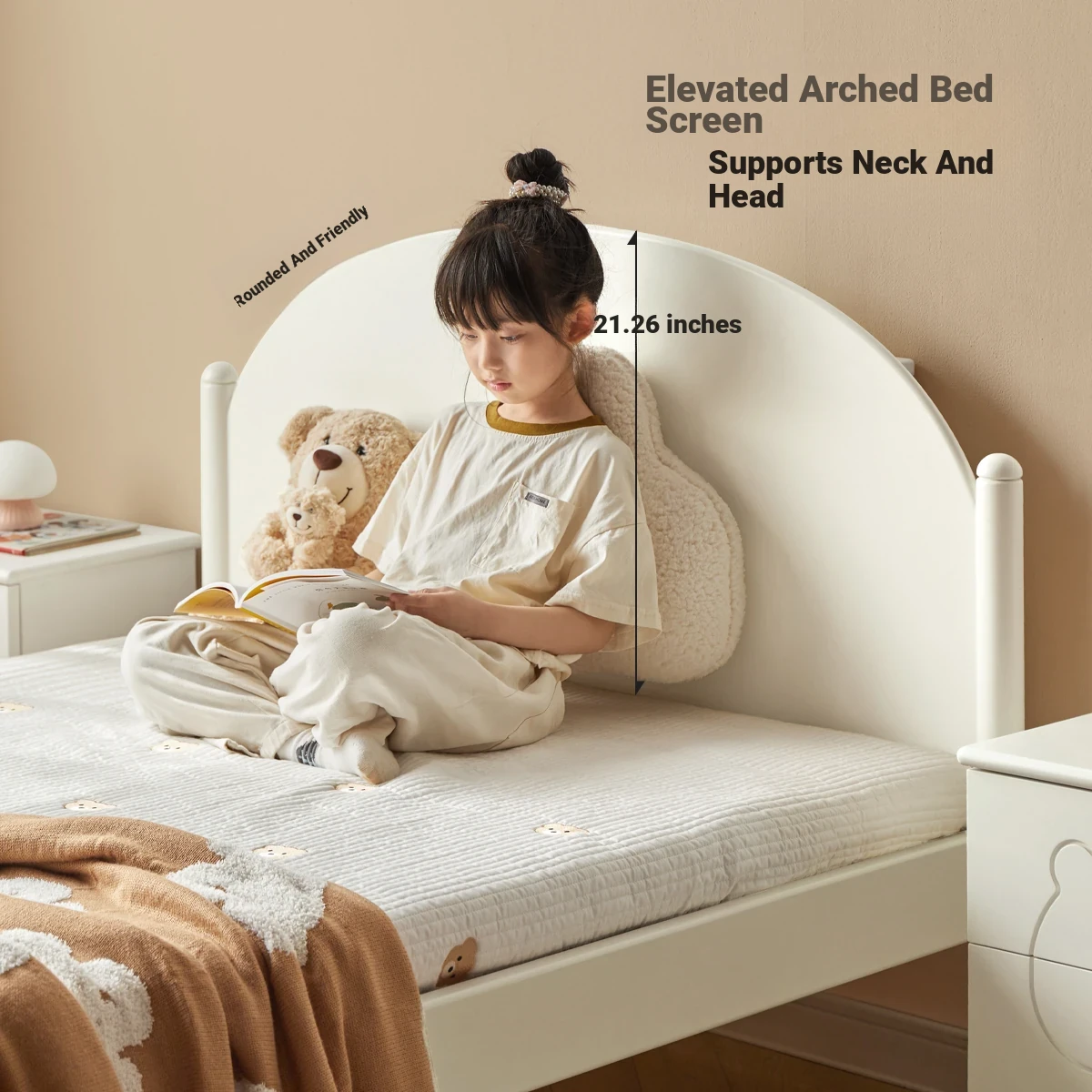 Visia Solid Wood Children's Bed - Modern Fabric Upholstered Bed, Nordic Beech Single Bed for Small Spaces [Farewell Edition] - Perfect for Cozy Homes and Sweet Dreams