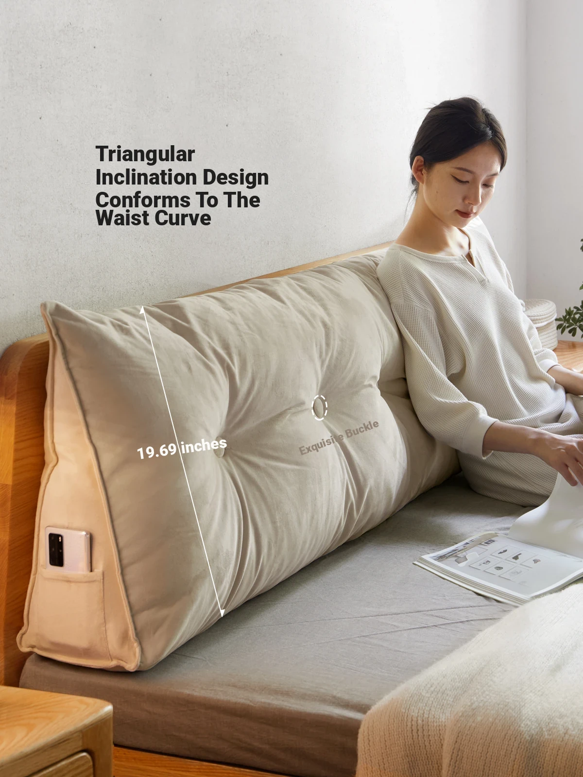 Washable Triangular Backrest Pillow for Small Bedrooms - Cozy and Supportive Wedge Cushion with Removable Cover - Ideal for Home Comfort and Lumbar Support