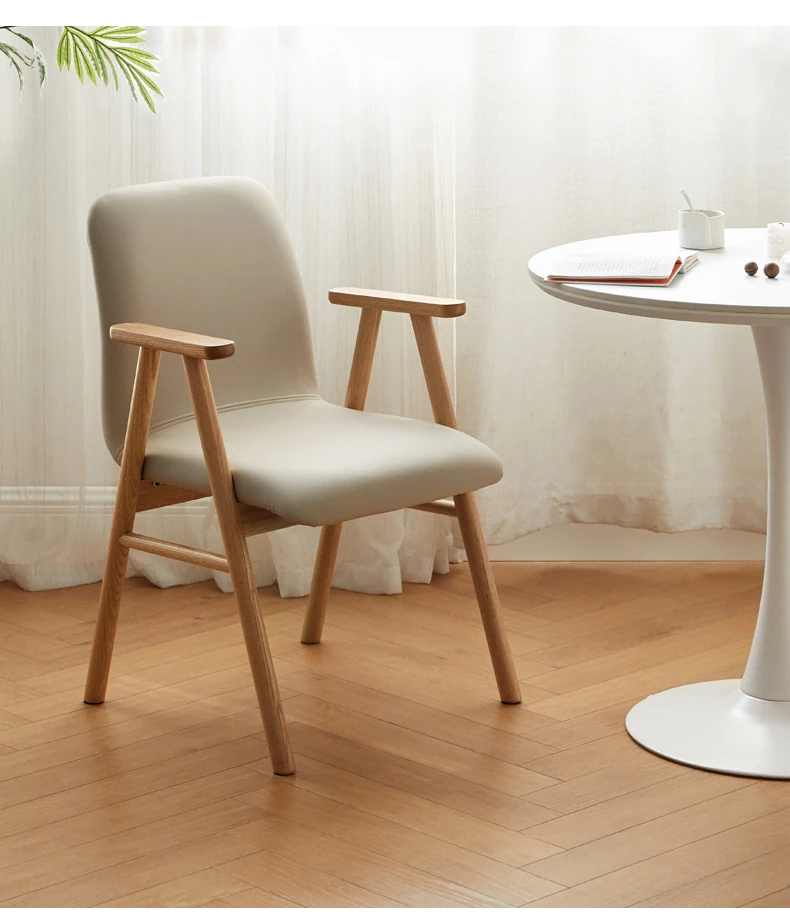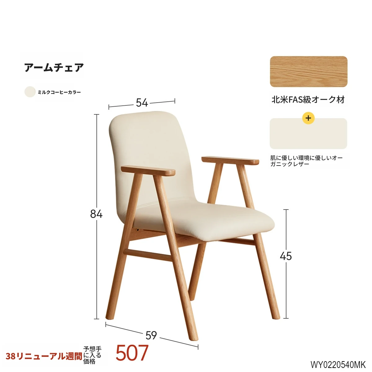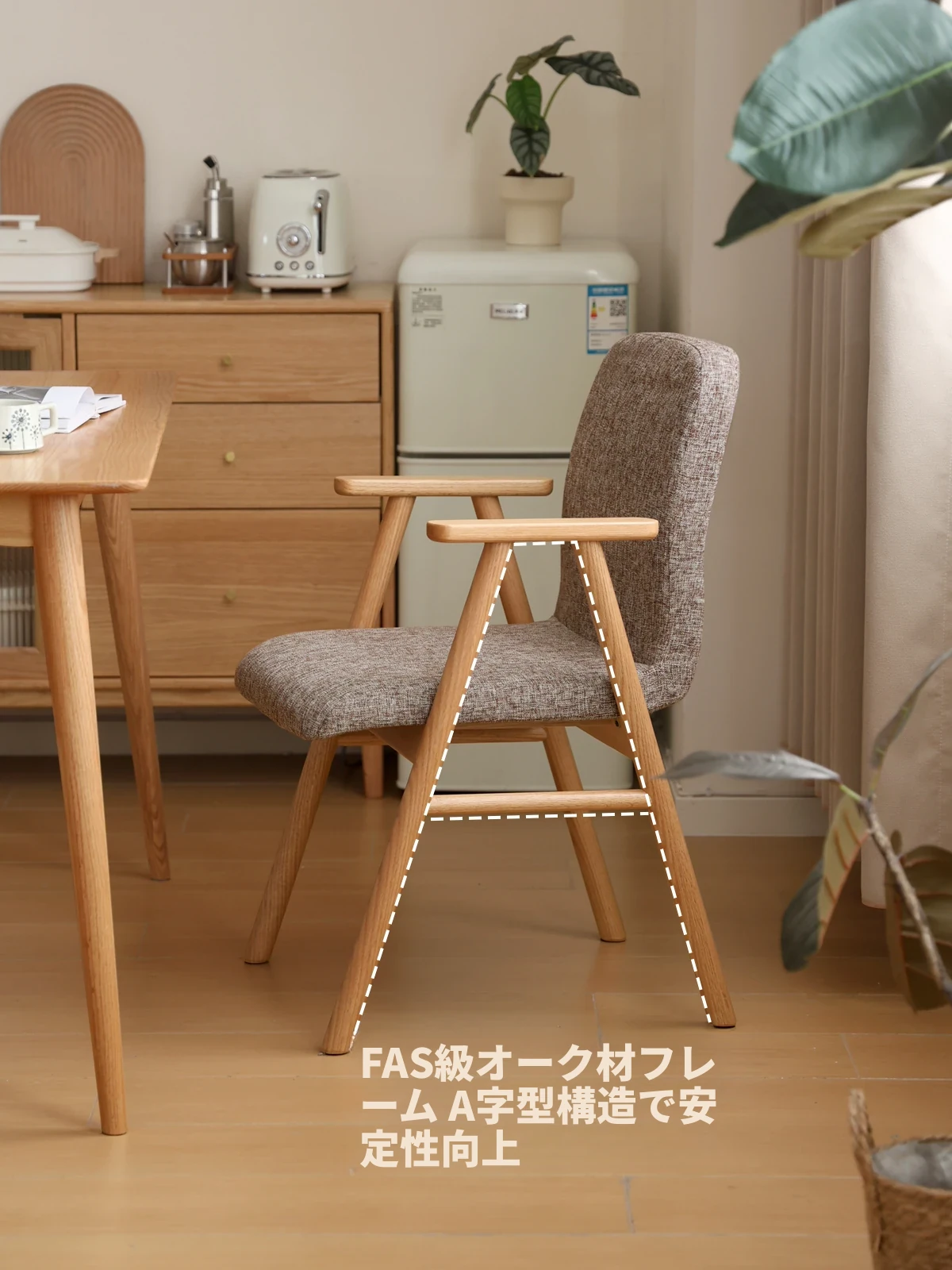 ヴィシャ実木製ソフトパッドダイニングチェア - モダンでシンプルなデザイン!小型住宅にぴったりのオーク材の背もたれ付リビングチェア。