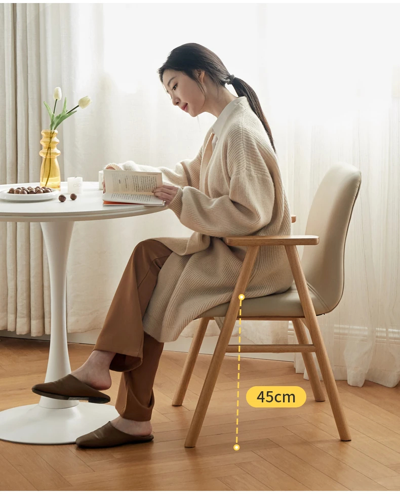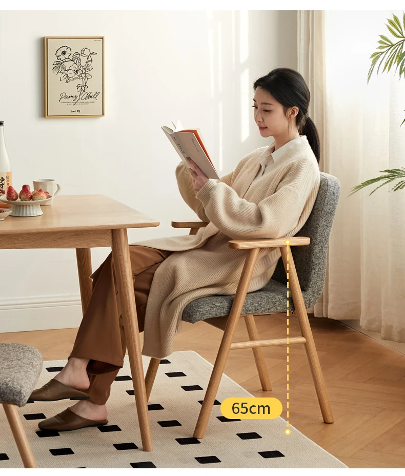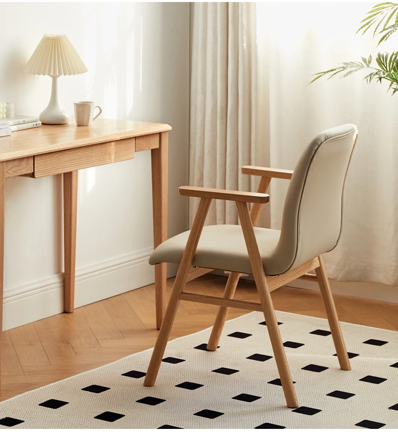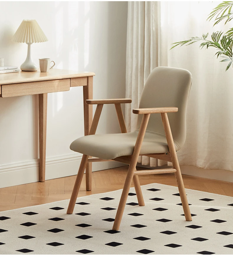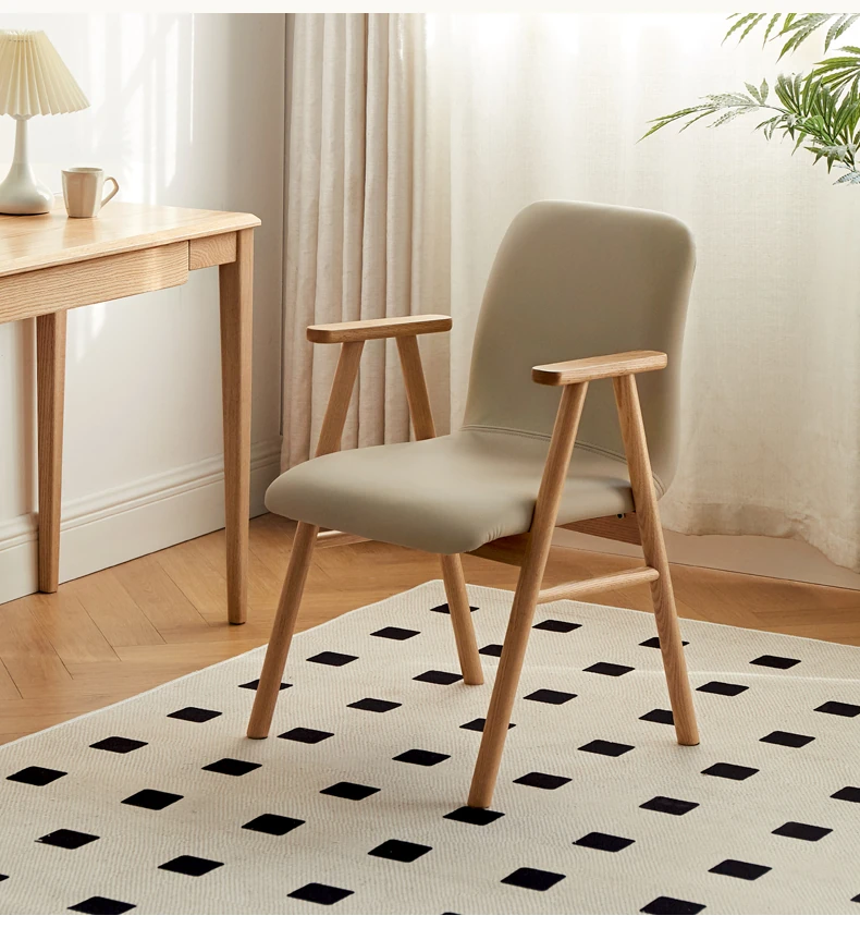 ヴィシャ実木製ソフトパッドダイニングチェア - モダンでシンプルなデザイン!小型住宅にぴったりのオーク材の背もたれ付リビングチェア。