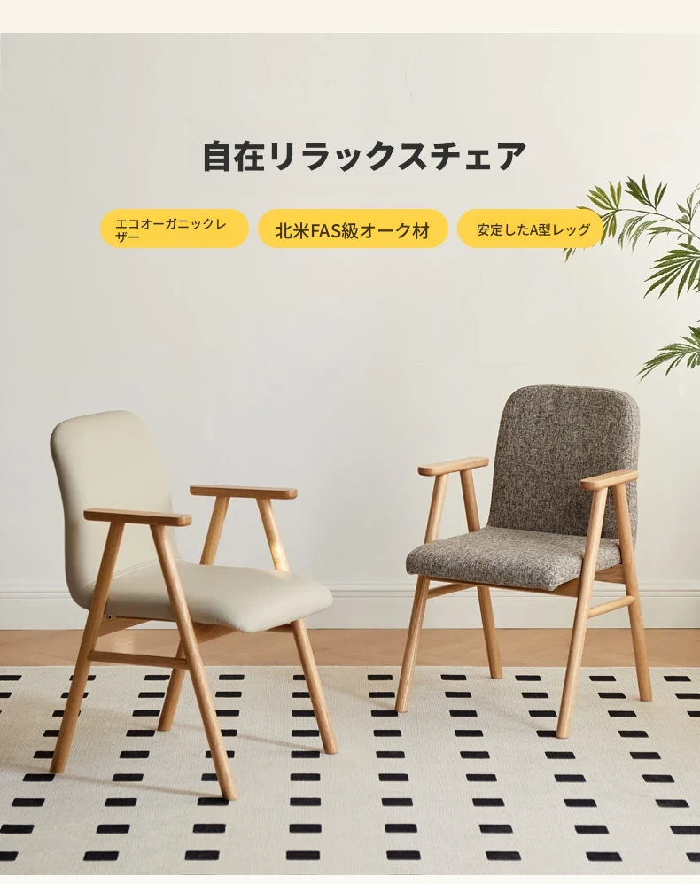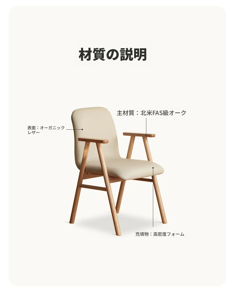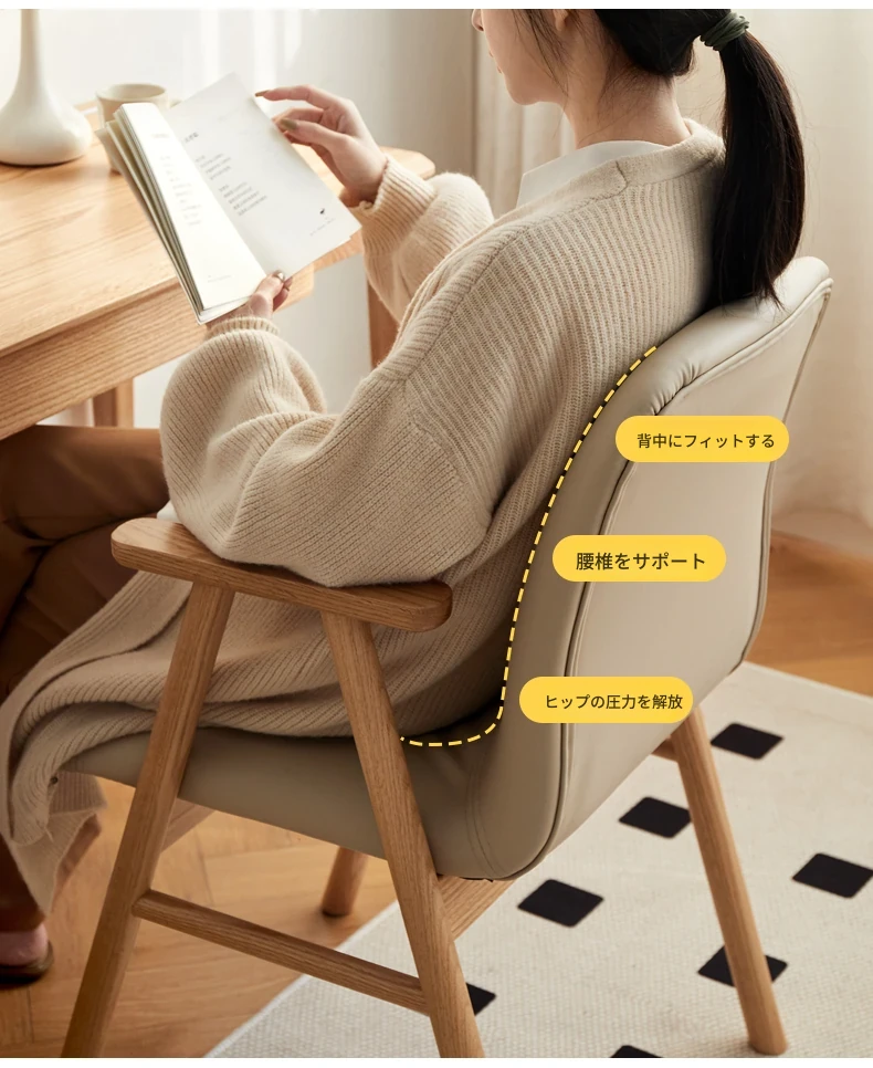 【商品おすすめポイント!】ヴィサ天然木製 家庭用リラックス書斎用背もたれ付きダイニングチェア