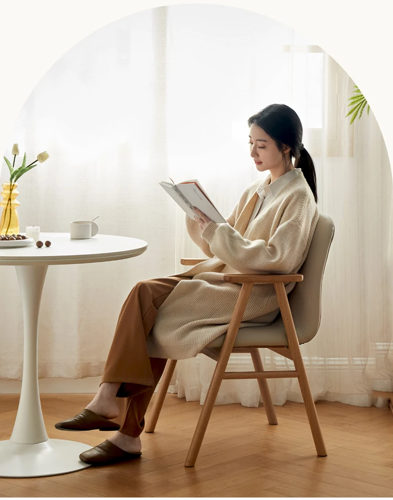 北欧風天然オーク使用!快適なソフトクッションのモダンデザイン肘無しチェア - ヴィーサホーム環境に優しいダイニングチェア & デスクチェア