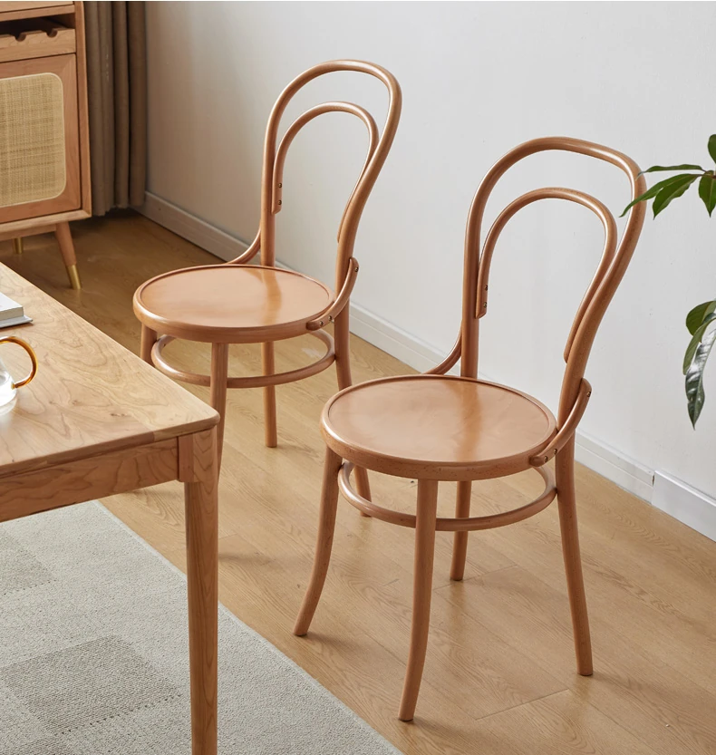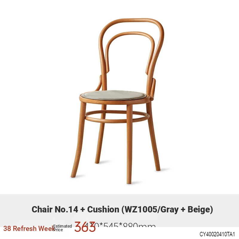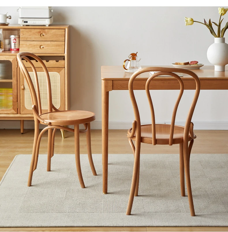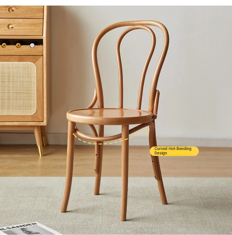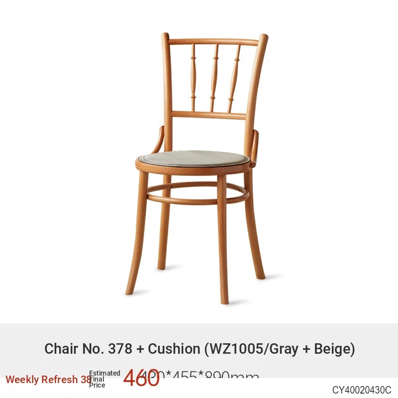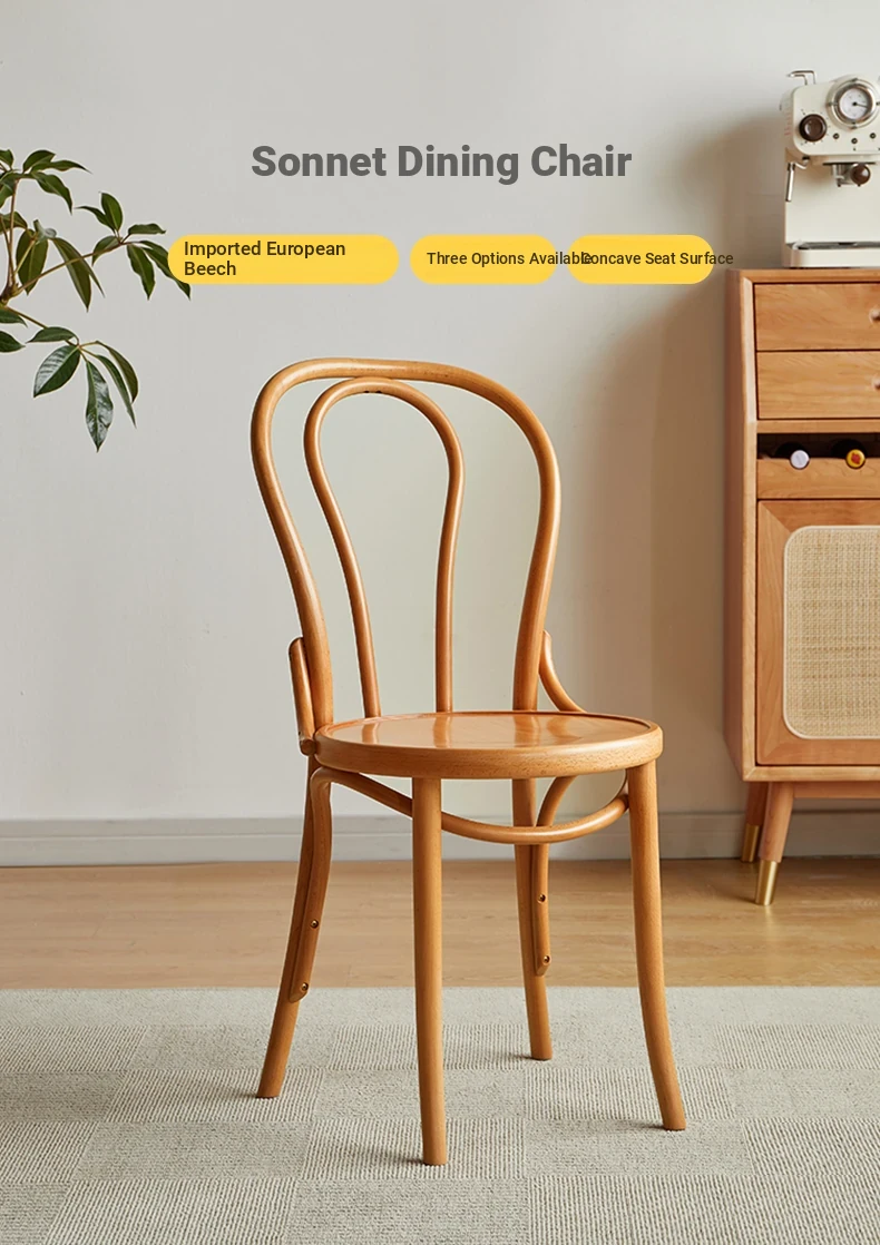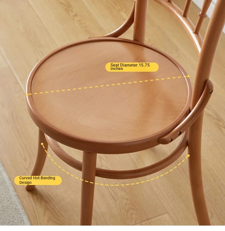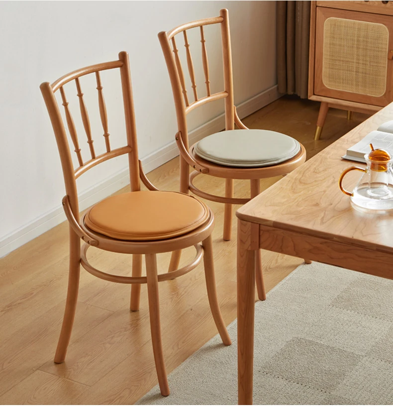 Vintage French Style Solid Wood Dining Chair - European Beech Wood, Soft Padded Cushion, Perfect for Home Dining Room or Office Desk