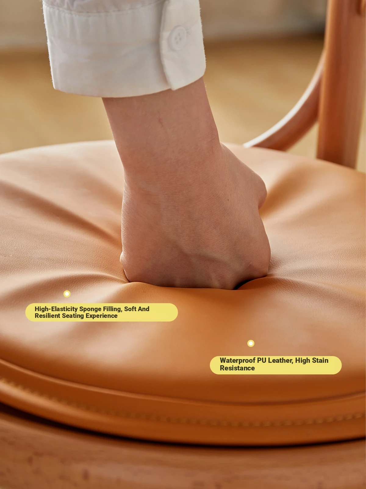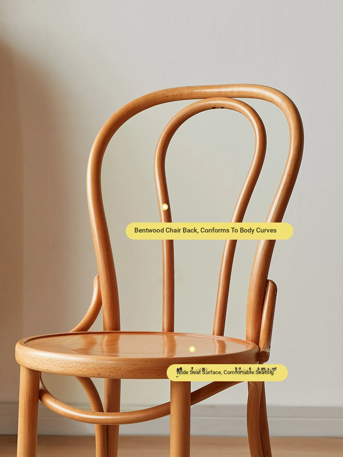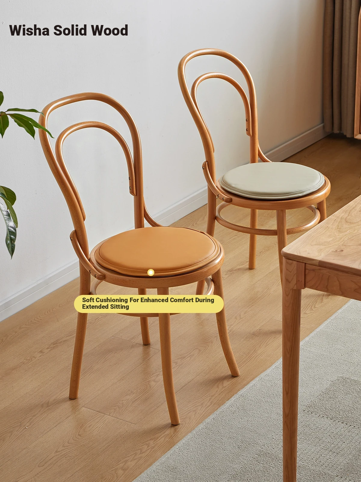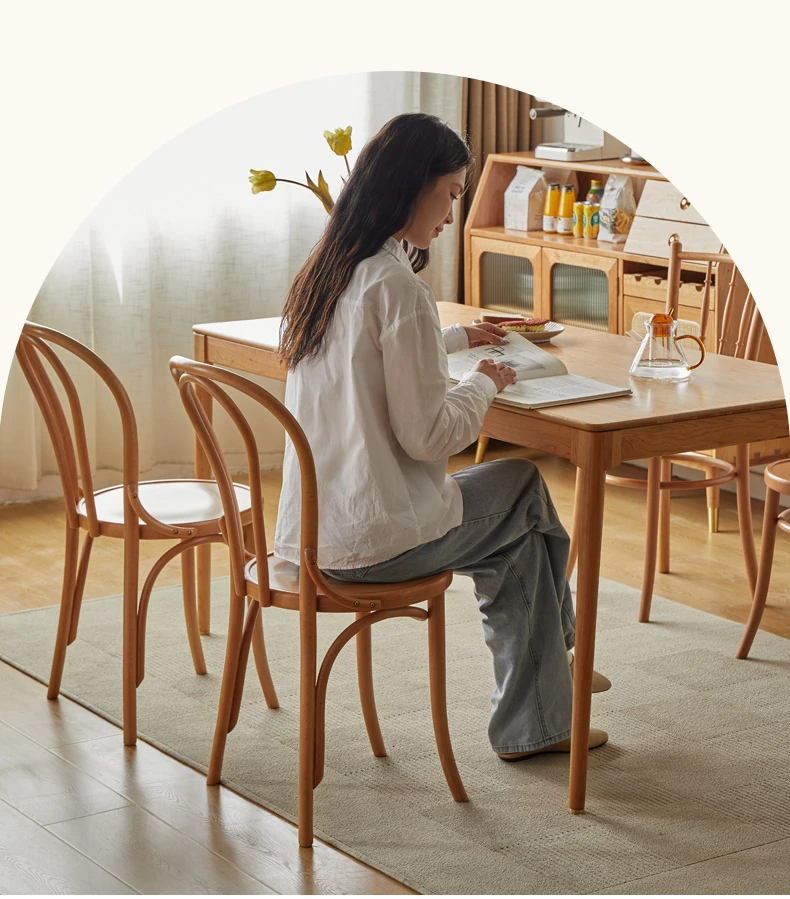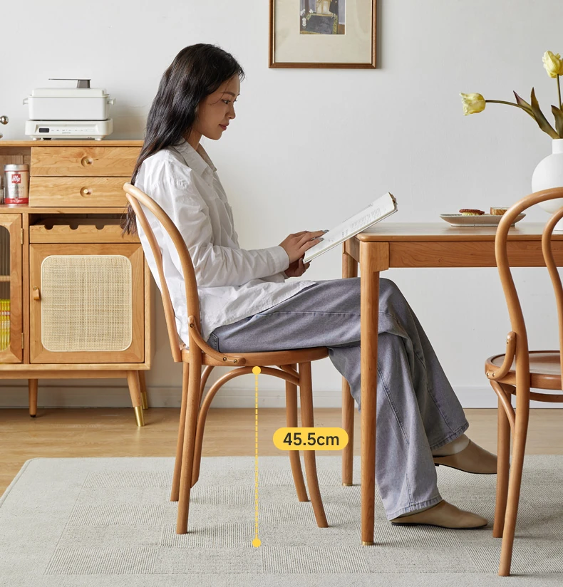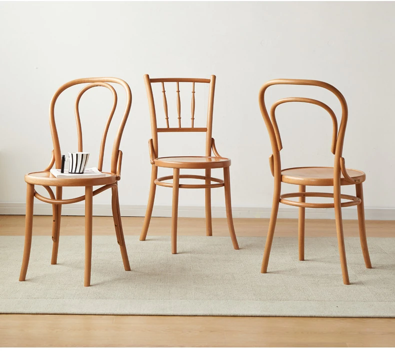 Vintage French Style Solid Wood Dining Chair - European Beech Wood, Soft Padded Cushion, Perfect for Home Dining Room or Office Desk